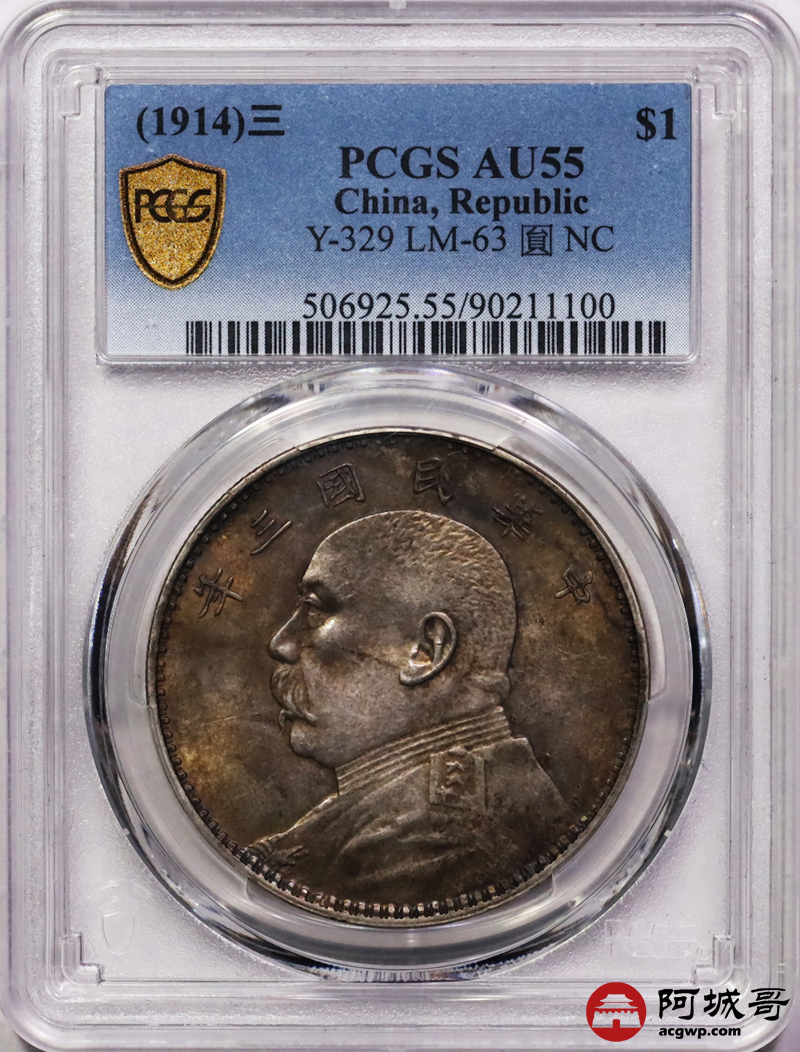 Lot:13 深打五彩转光 三年大头壹圆 PCGS AU55