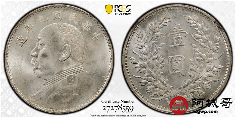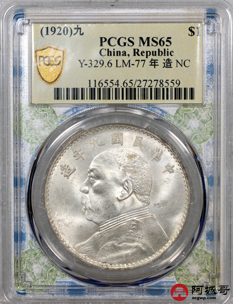 Lot:8 拆卷曝光 九年中发壹圆 PCGS MS65