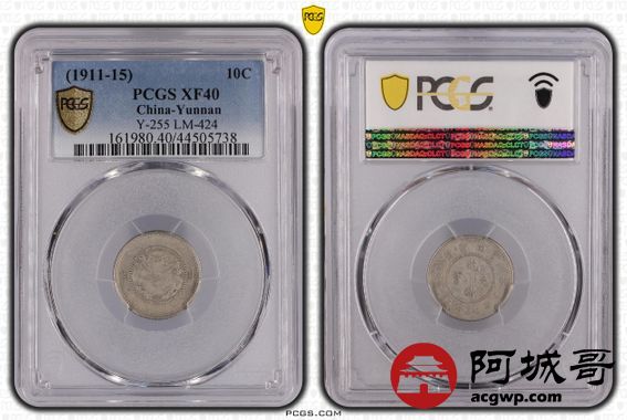 Lot:30 原味云南困龙贰角 PCGS XF40