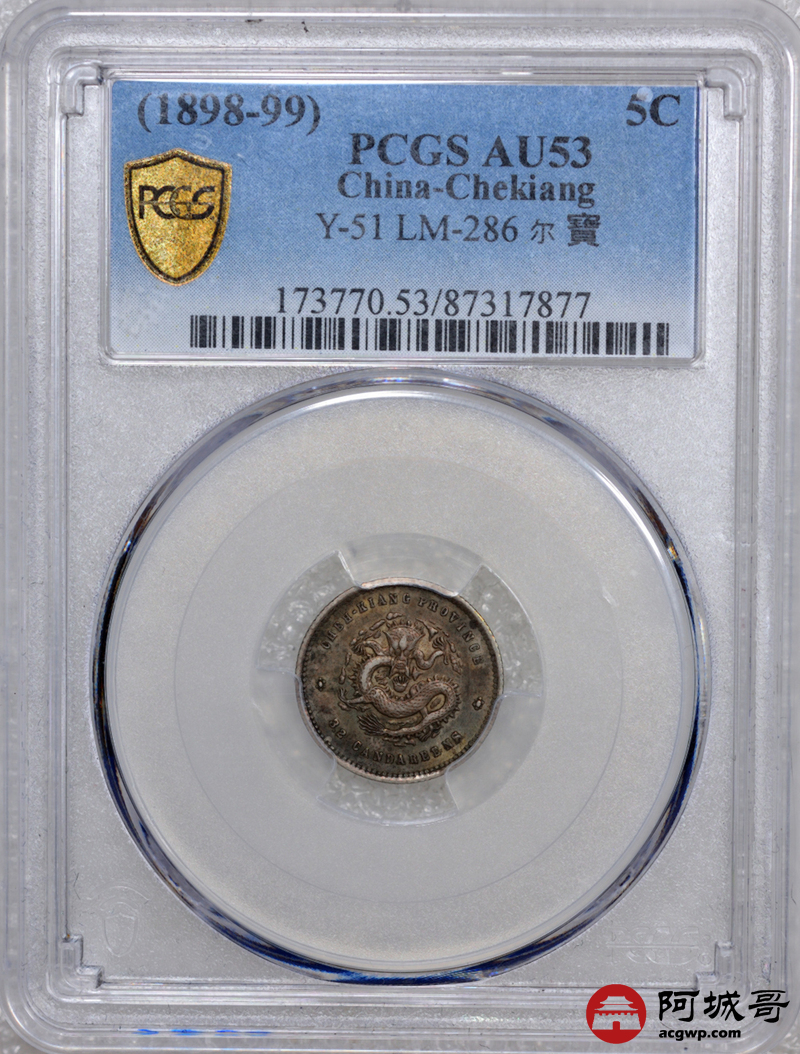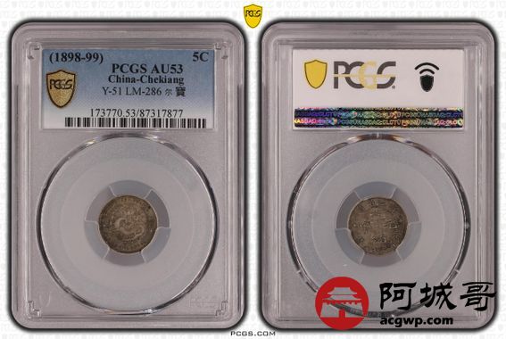 Lot:24 原味 酱彩 浙江光绪三分六厘 PCGS AU53