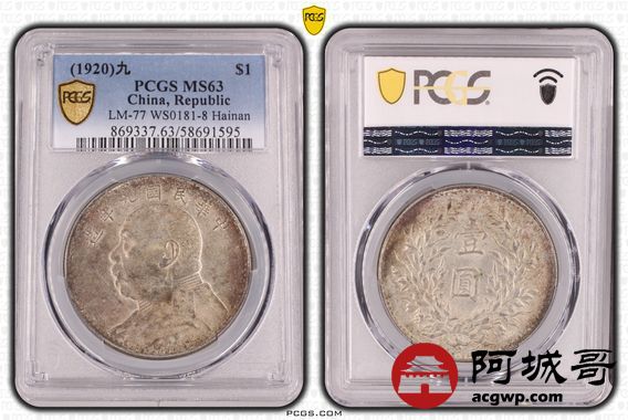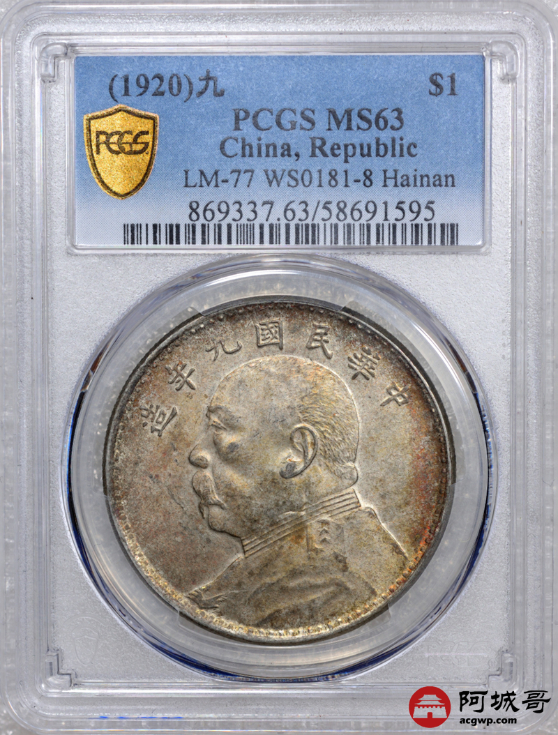 Lot:5 五彩原光 九年大头 海南版 PCGS MS63