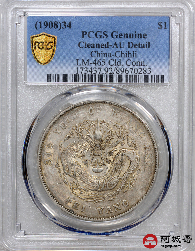 Lot:17 原味黄油包浆 北洋34七钱二分 PCGS AU