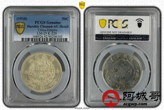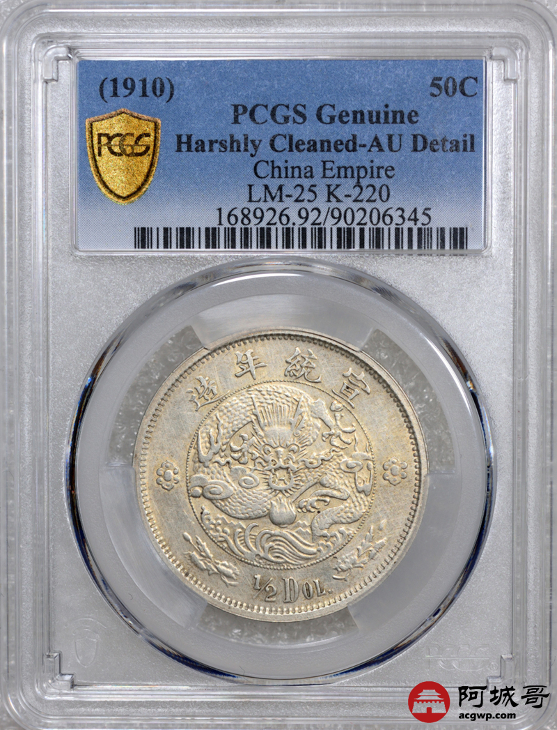 Lot:23 深打底光 宣二水龙伍角 PCGS AU