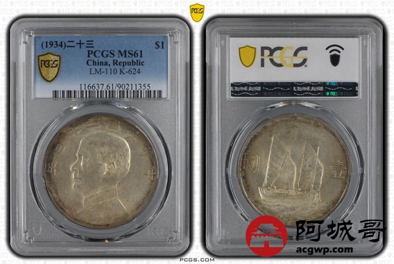 Lot:15 黄油原味 二十三年船洋 PCGS MS61盒小磕