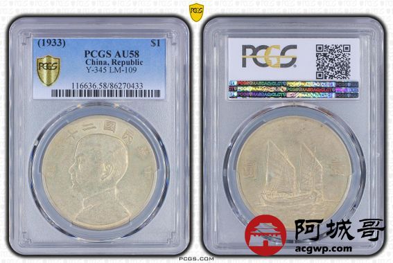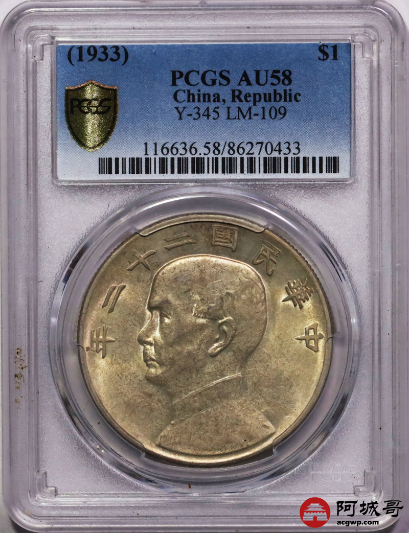 Lot:17 黄油转光 二十二年船洋 PCGS AU58