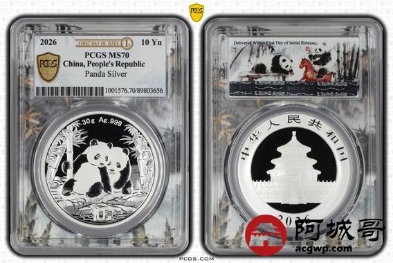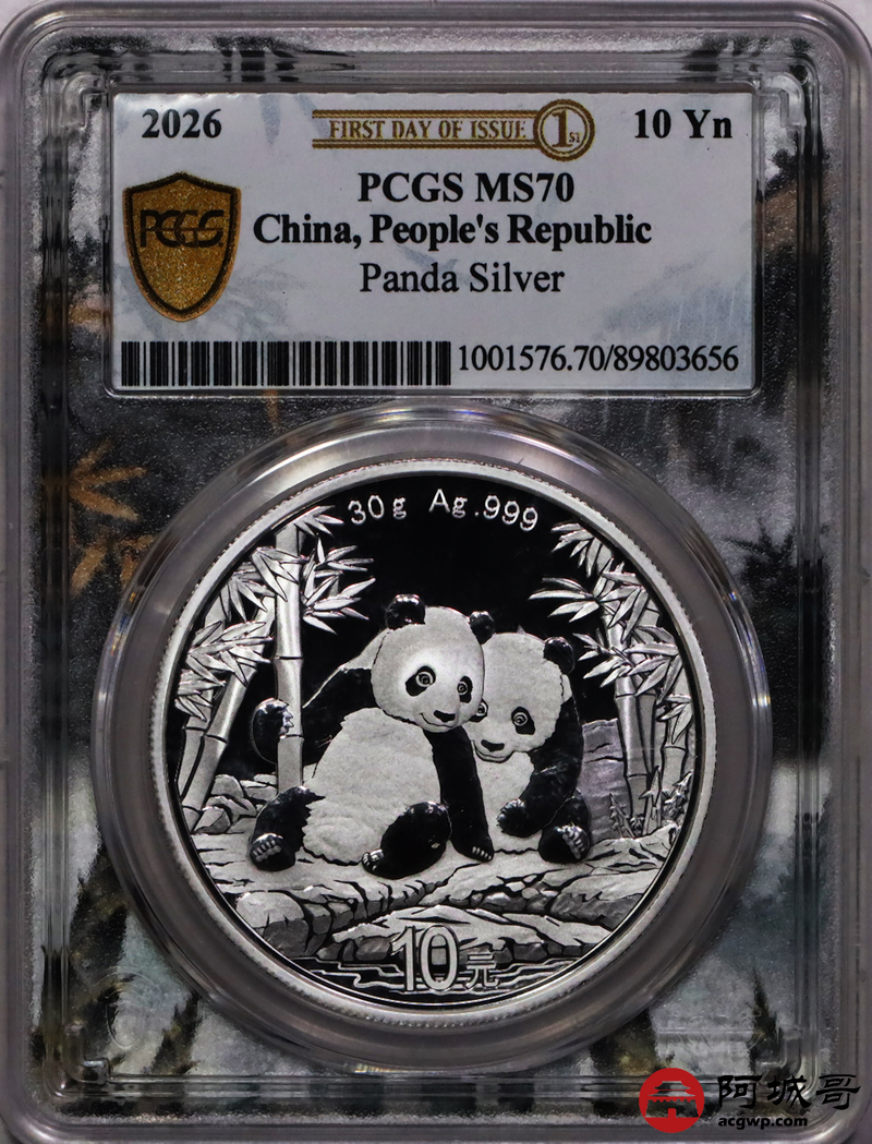 Lot:22 2026年熊猫10元银币PCGS MS70首日
