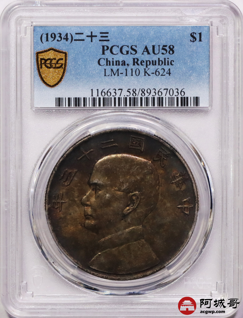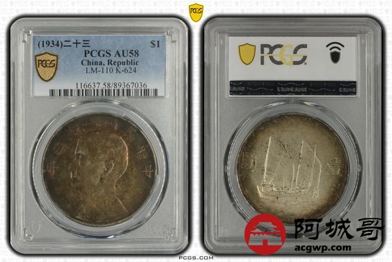 Lot:32 原味入骨满酱彩 二十三年船洋 PCGS AU58盒小磕