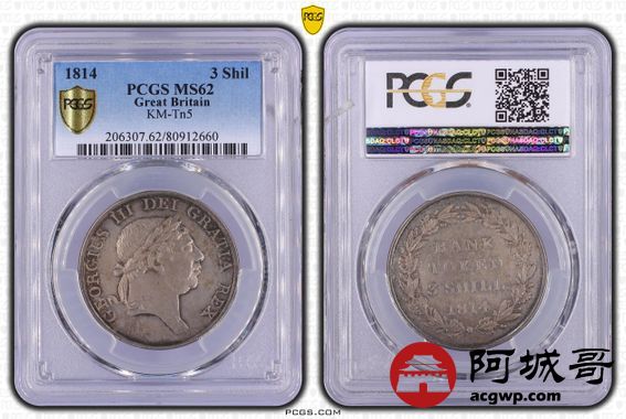 Lot:20 1814年英国乔治三世3先令银币 PCGS MS62