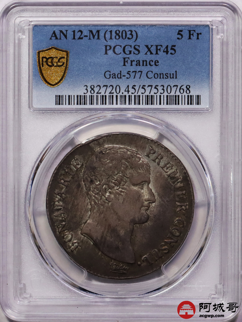 Lot:19 1803年拿破仑第一执政5法郎银币 PCGS XF45