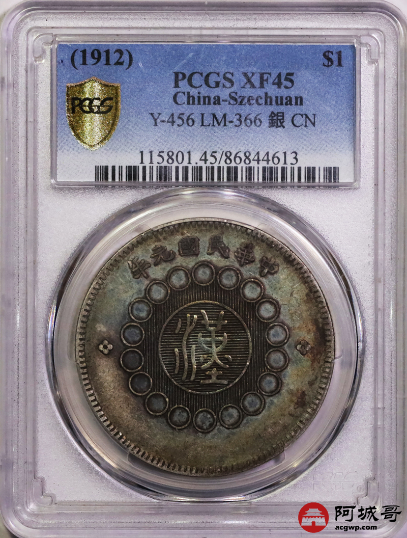 Lot:4 原味五彩 四川军政府壹圆 PCGS XF45