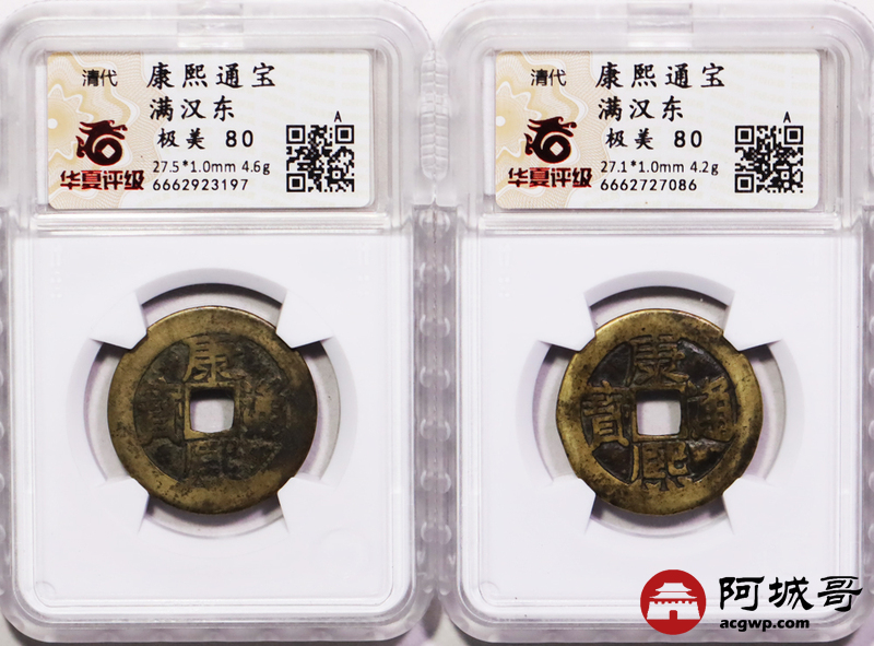 Lot:37 清 康熙通宝 满汉东 华夏 极美80 两枚一组