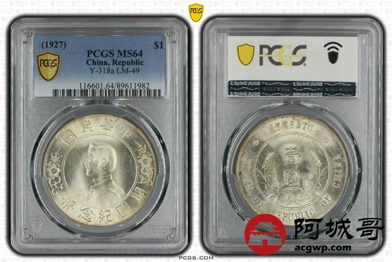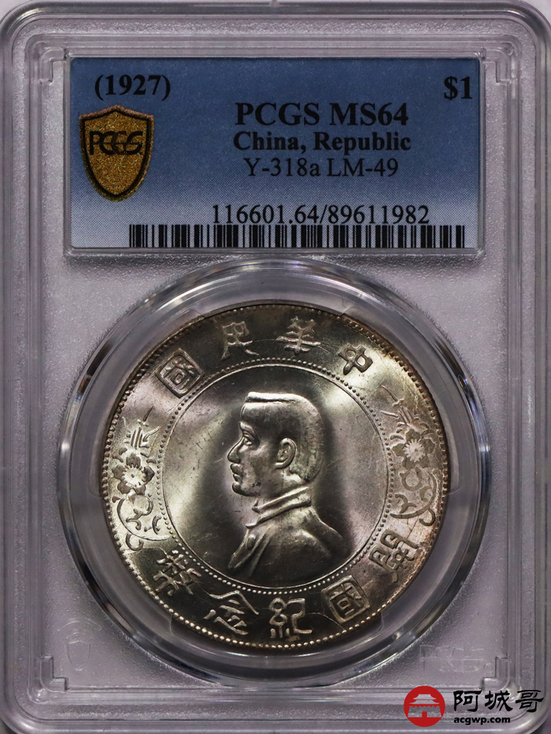 Lot:11 黄油车轮光 孙像小头壹圆 PCGS MS64