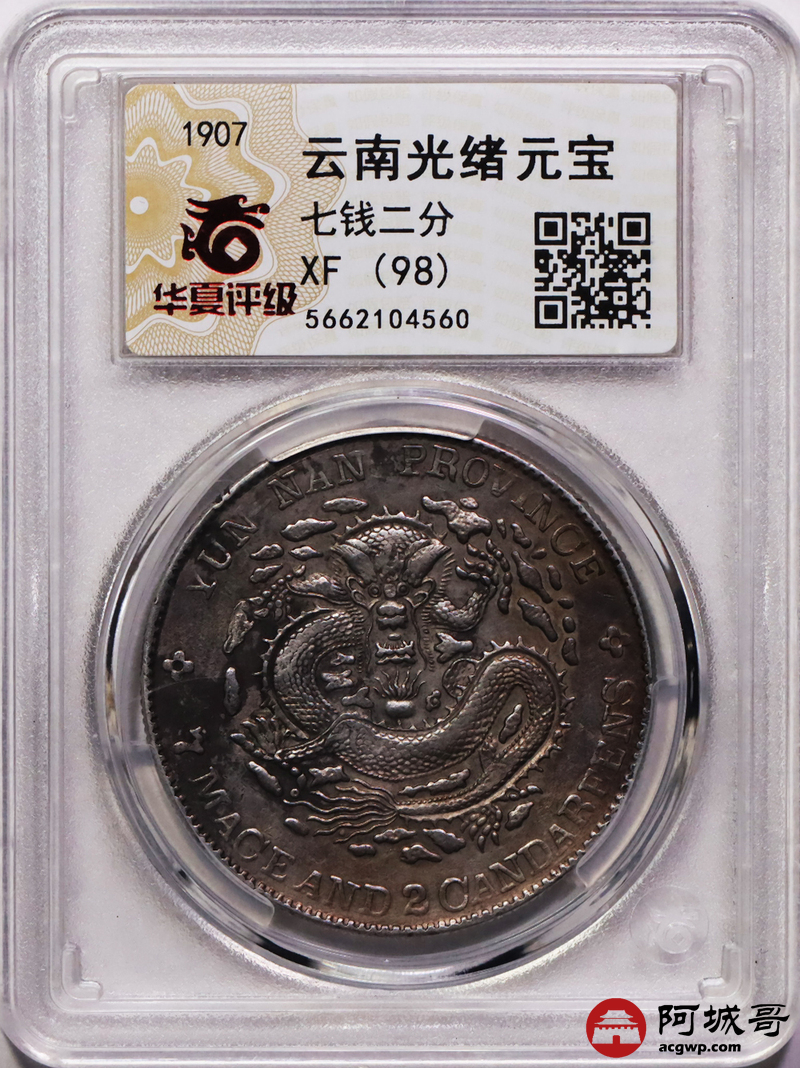 Lot:23 深打 老云南光绪七钱二分 华夏评级 XF