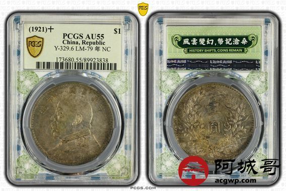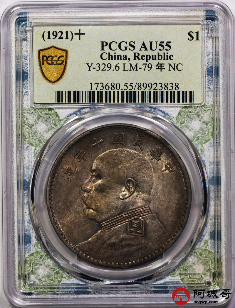 Lot:10 黄油转光 十年大头壹圆 PCGS AU55