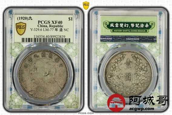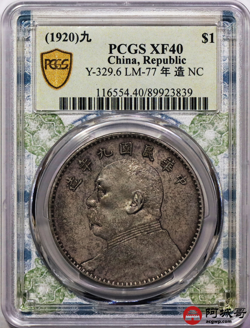 Lot:1 原味老包浆 九年中发壹圆 PCGS XF40