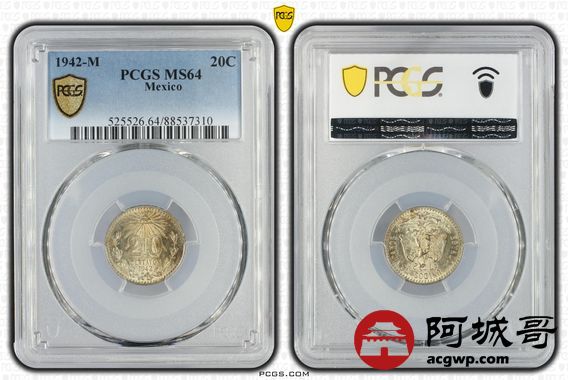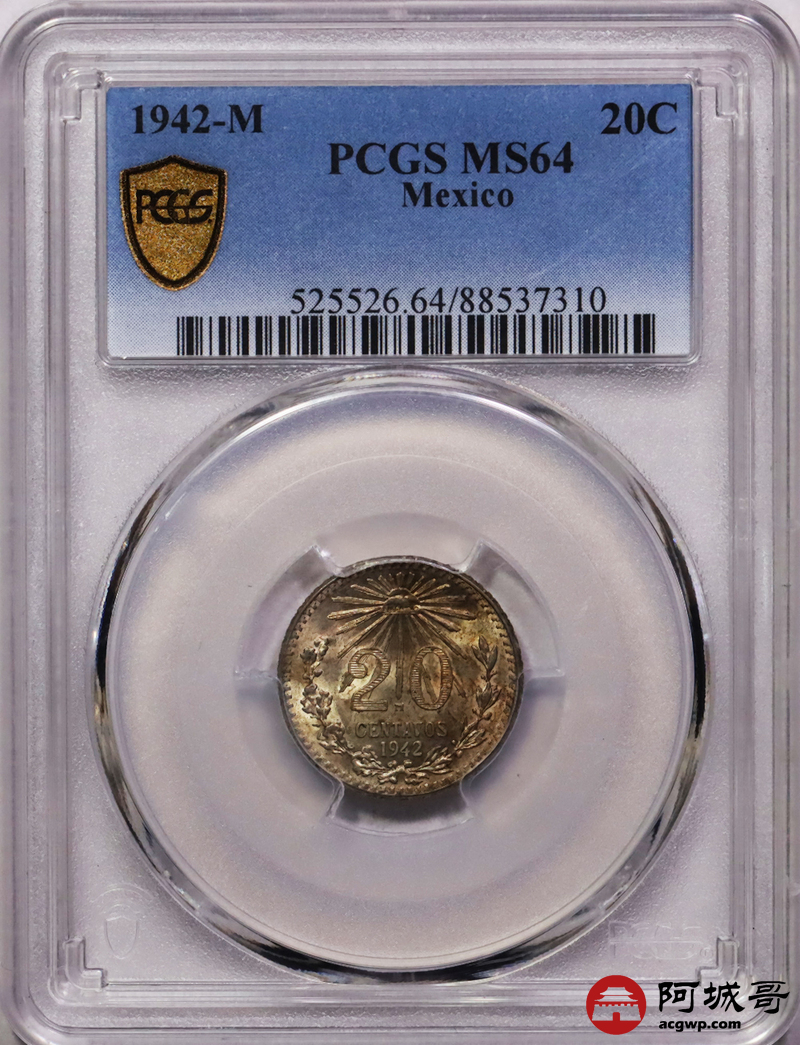 Lot:43 1942-M黄油原光墨西哥鹰洋20C PCGS MS64