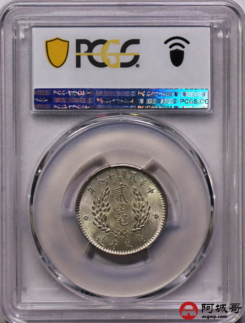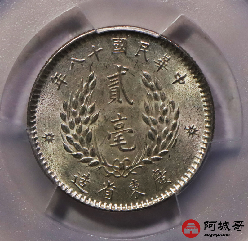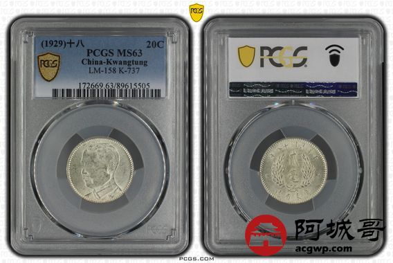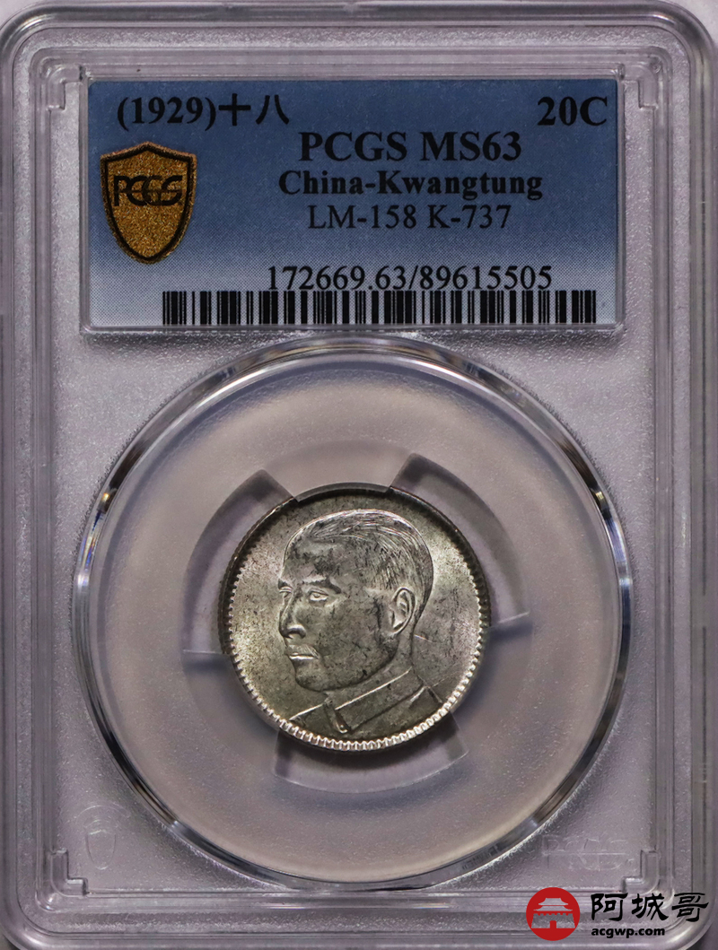 Lot:42 原光民国十八年广东孙像贰豪 PCGS MS63