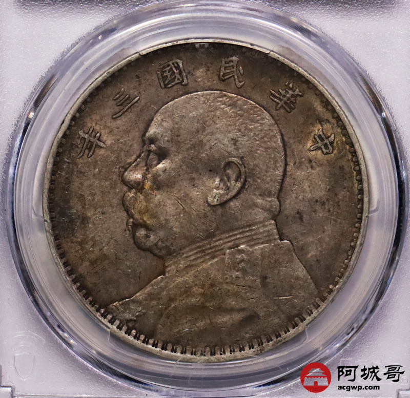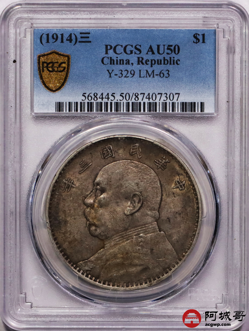 Lot:2 原味 黄油包浆 三年大头壹圆 PCGS AU50盒磕碰