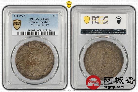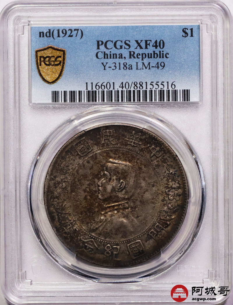Lot:5 原味酱彩 孙像小头壹圆 PCGS XF40