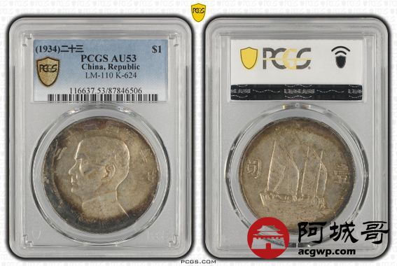 Lot:11 原味 环彩 二十三年船洋 PCGS AU53