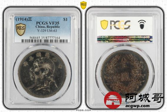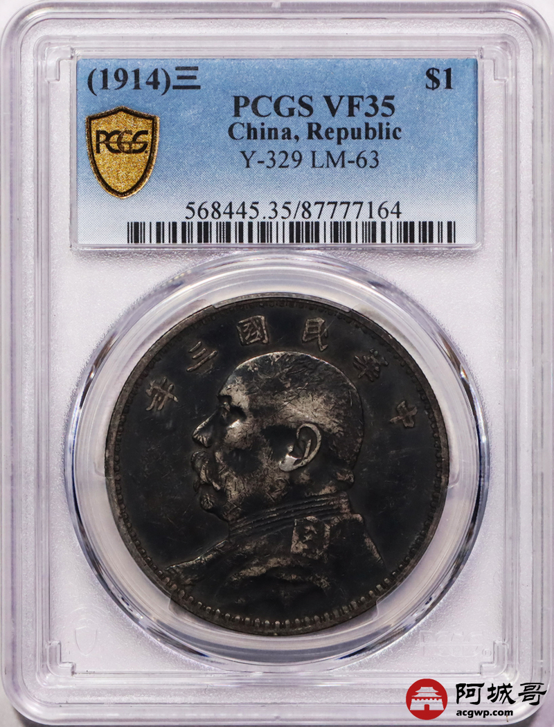 Lot:4 传世 黑美人 三年大头壹圆 PCGS VF35