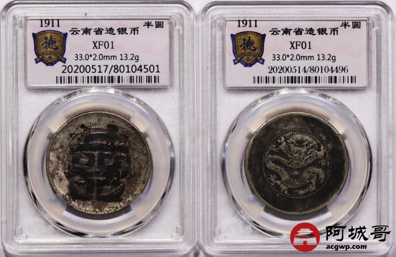 Lot:40 原味老包浆 云南新龙半圆 朱砂双囍 德泉缘 XF01两枚
