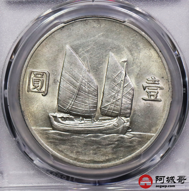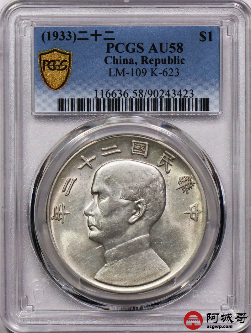 Lot:22 原色光 二十二年船洋壹圆 PCGS AU58
