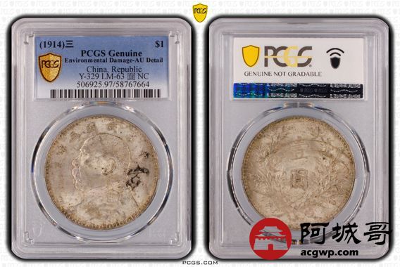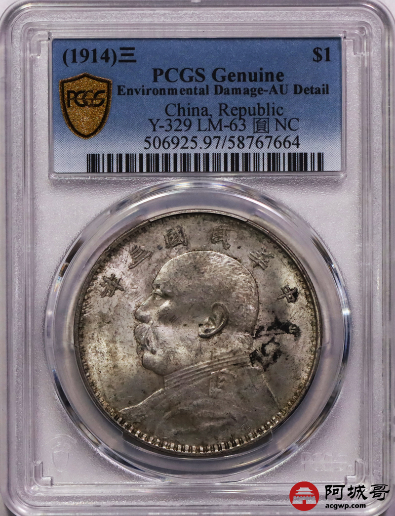 Lot:37 原味 黄油转光 三年大头壹圆 PCGS AU