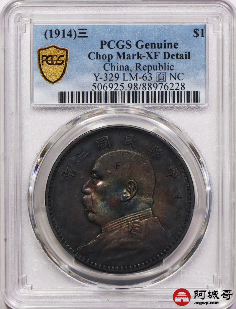 Lot:32 紫罗兰五彩 三年大头壹圆 PCGS XF