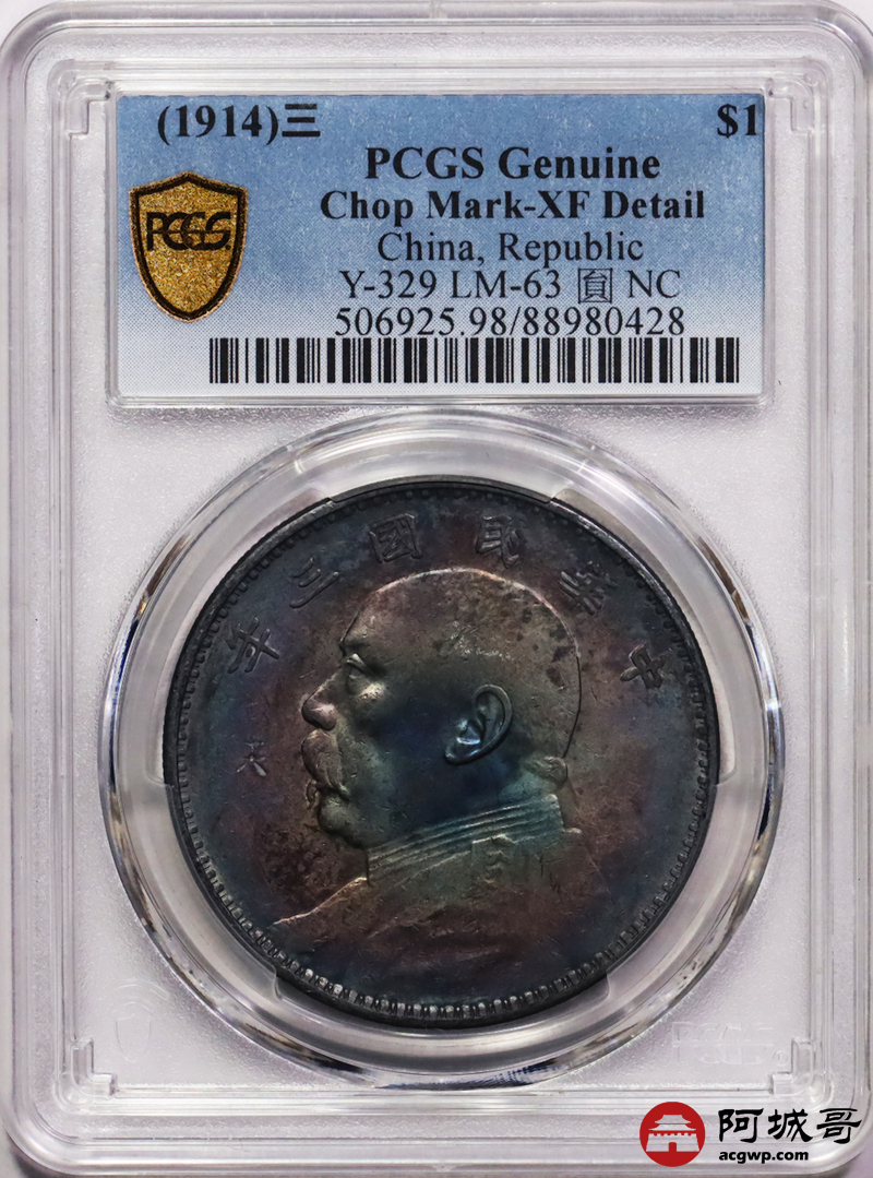 Lot:31 紫罗兰五彩 三年大头壹圆 PCGS XF