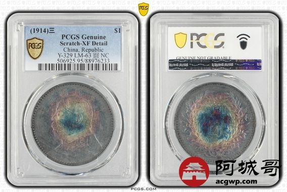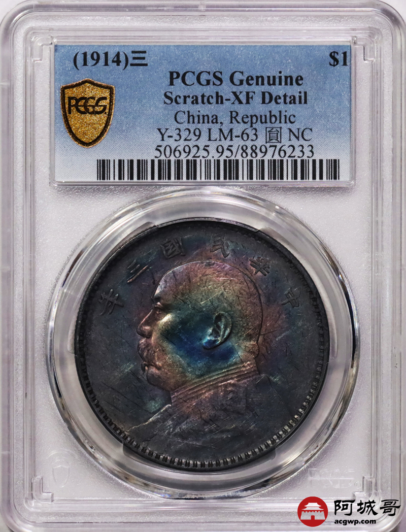 Lot:3 紫罗兰五彩 三年大头壹圆 PCGS XF