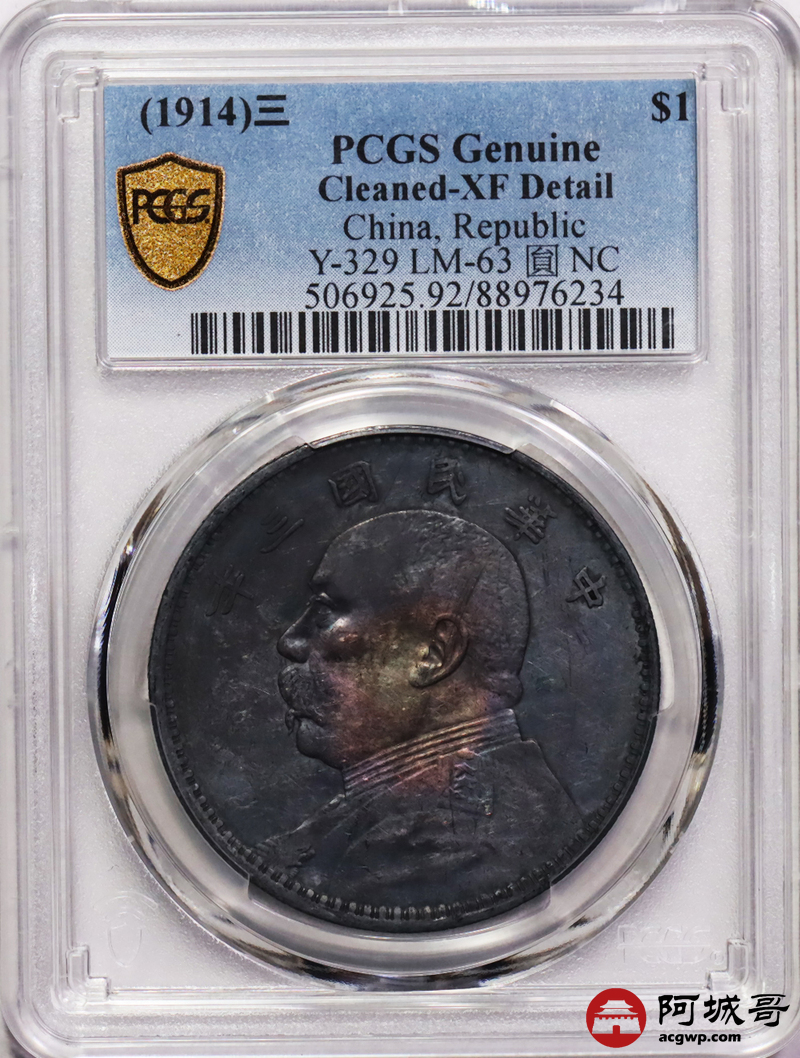 Lot:33 紫罗兰五彩 三年大头壹圆 PCGS XF