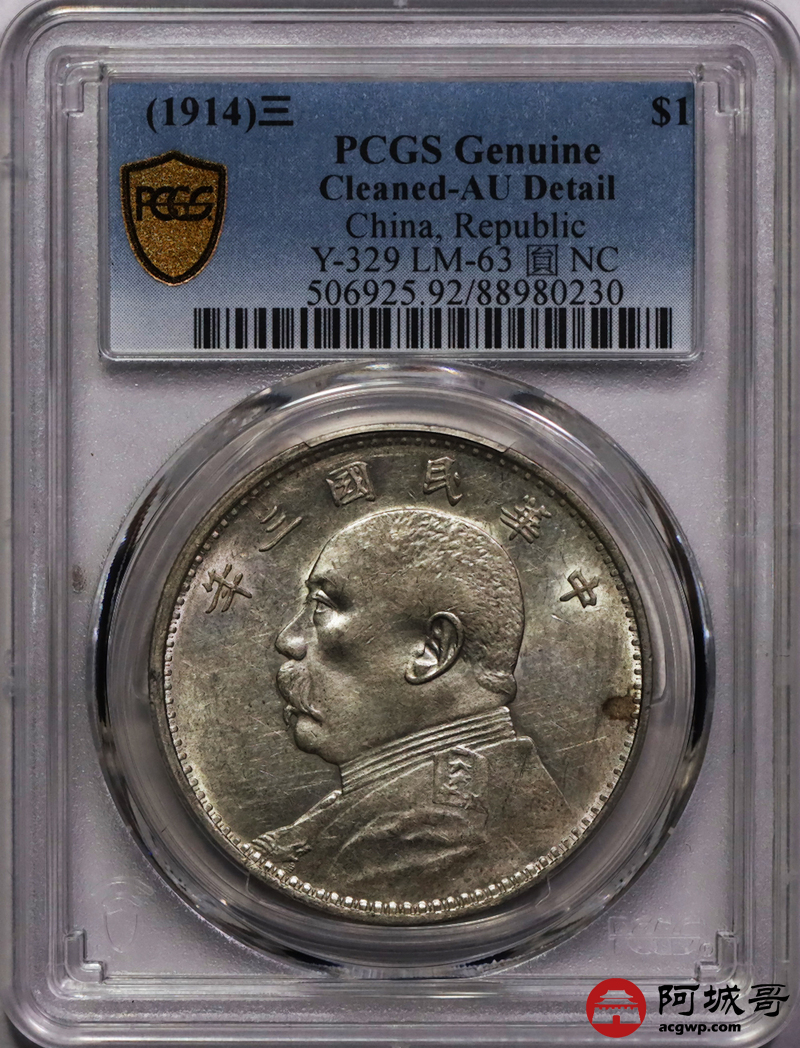 Lot:2 深打转光 三年大头壹圆 PCGS AU