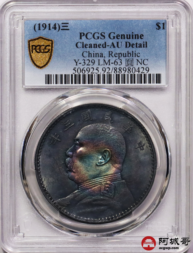 Lot:34 紫罗兰五彩 三年大头壹圆 PCGS AU