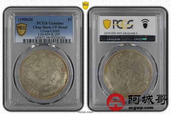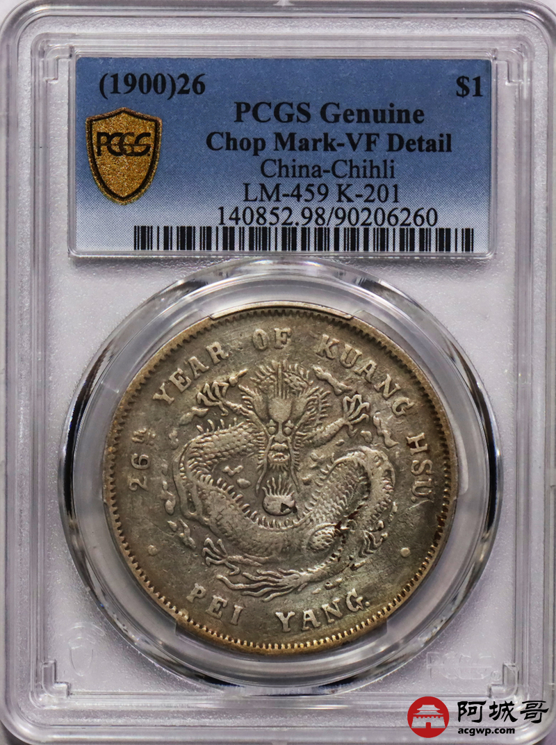 Lot:27 黄油底光 北洋26七钱二分 PCGS VF