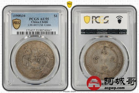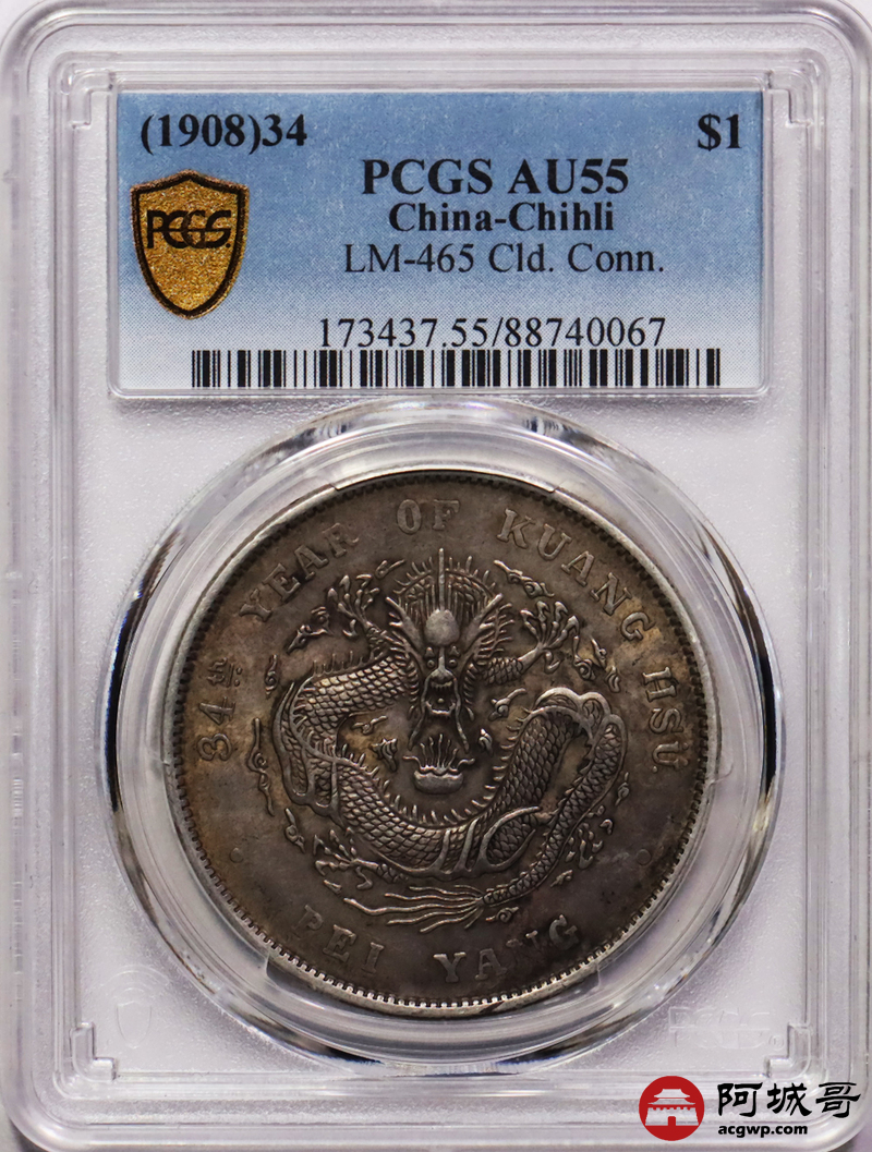 Lot:13 深打 黄油转光 北洋34七钱二分 PCGS AU55