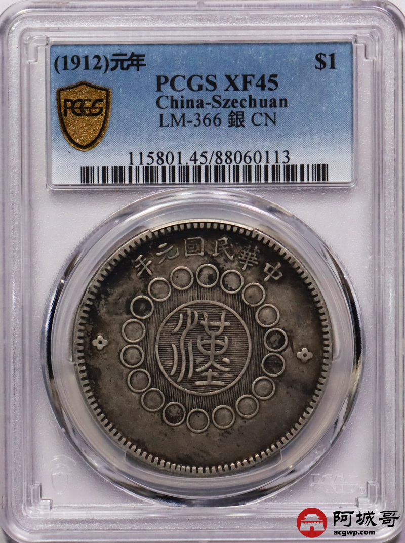 Lot:23 原味酱彩老包浆 四川军政府壹圆 PCGS XF45