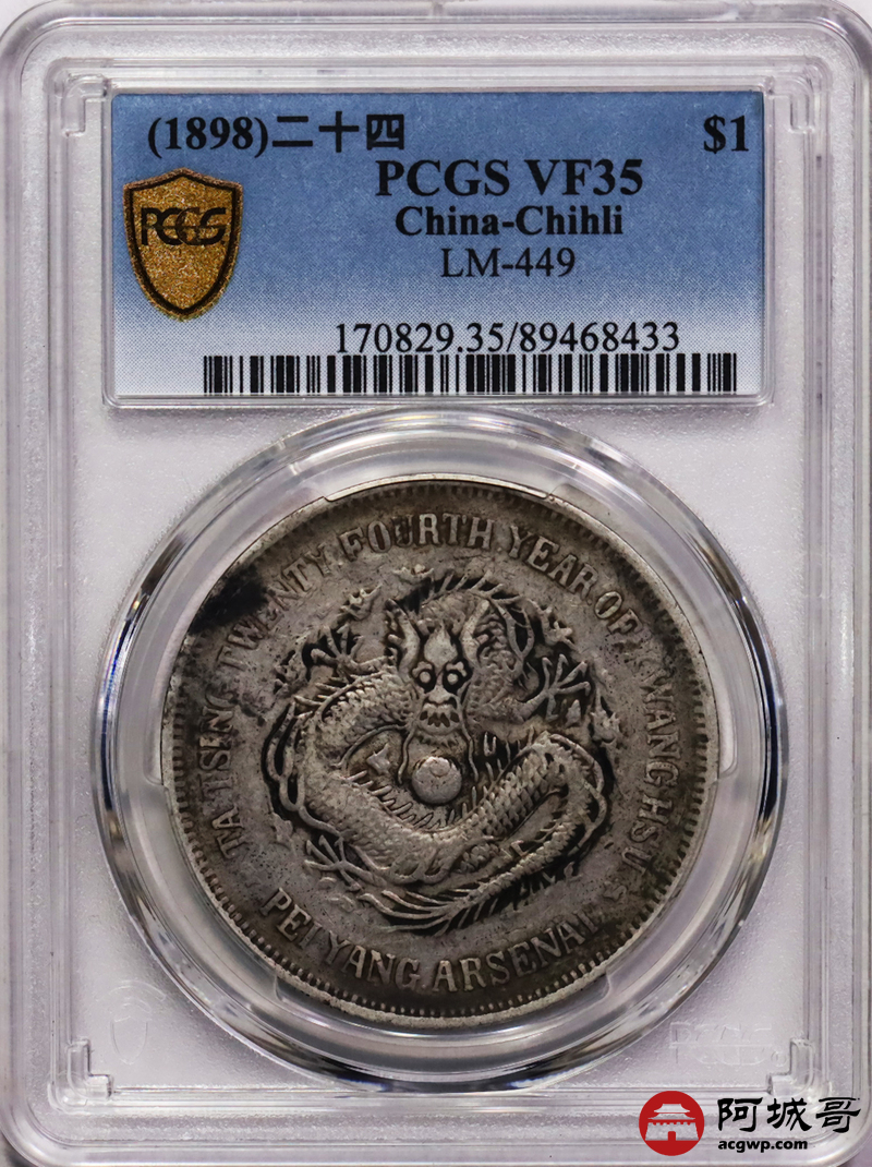 Lot:14 原味老包浆 北洋二十四年机器局壹圆 PCGS VF35