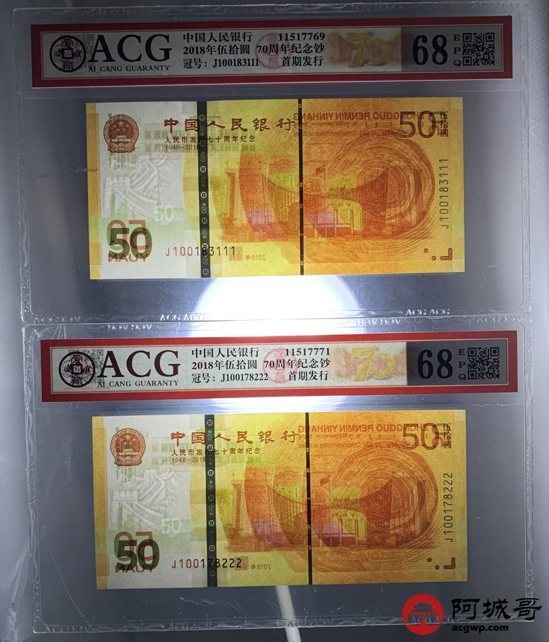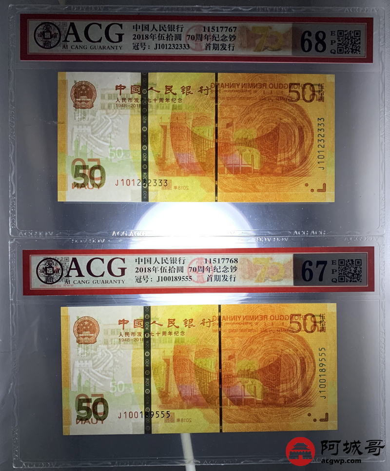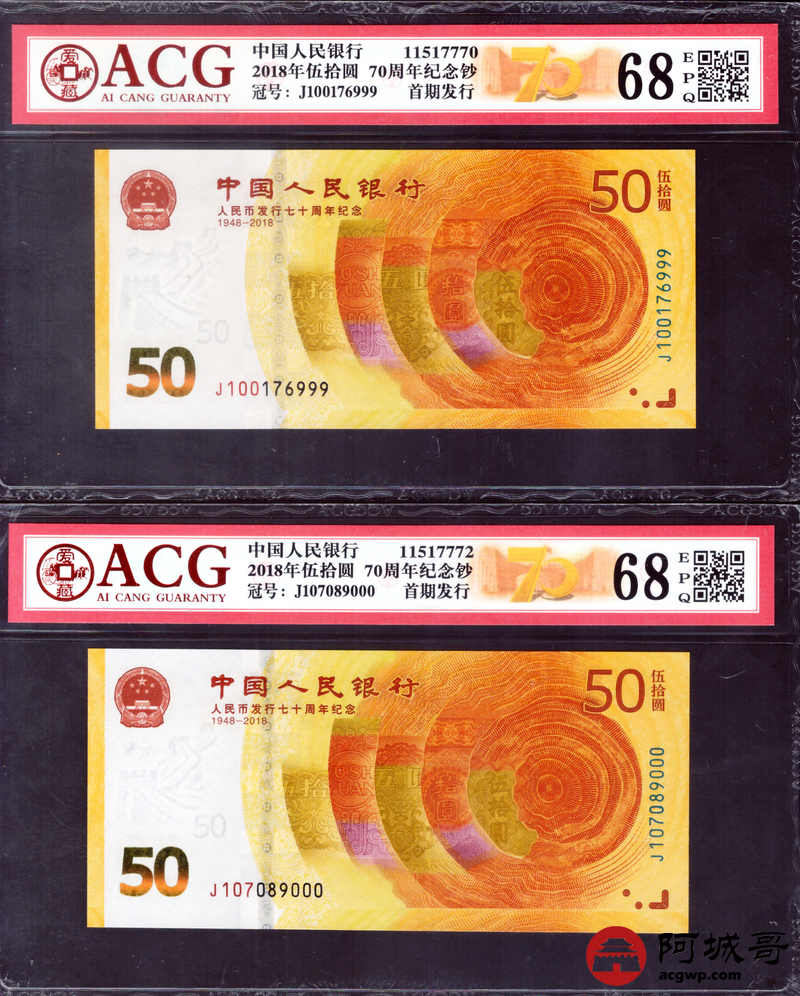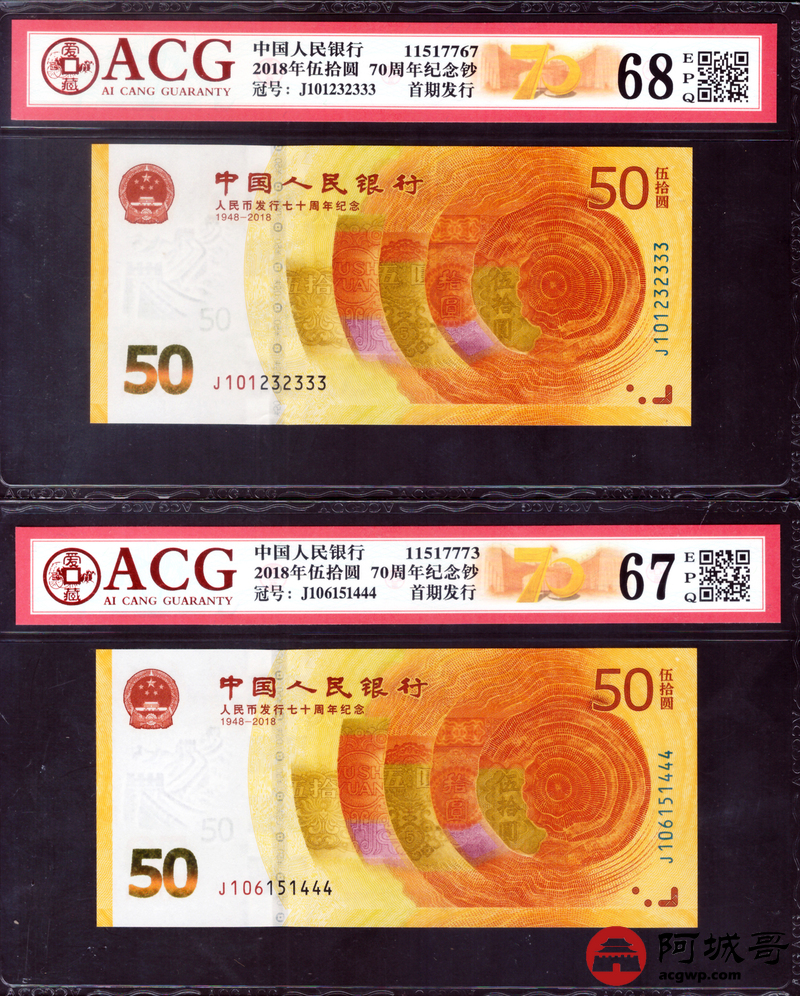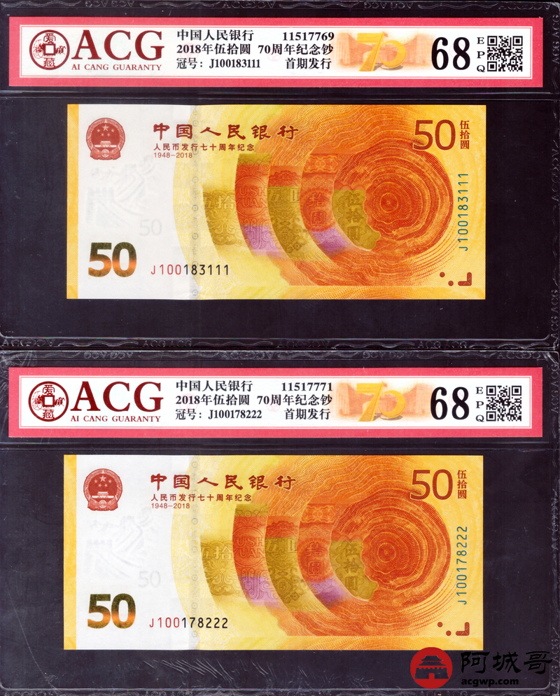 Lot:null 2018年人民币成立70周年 尾豹子号111-000 10张一组