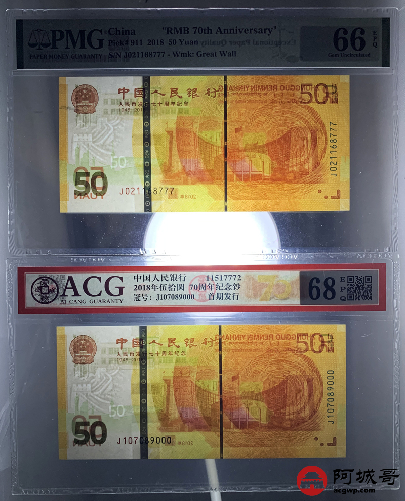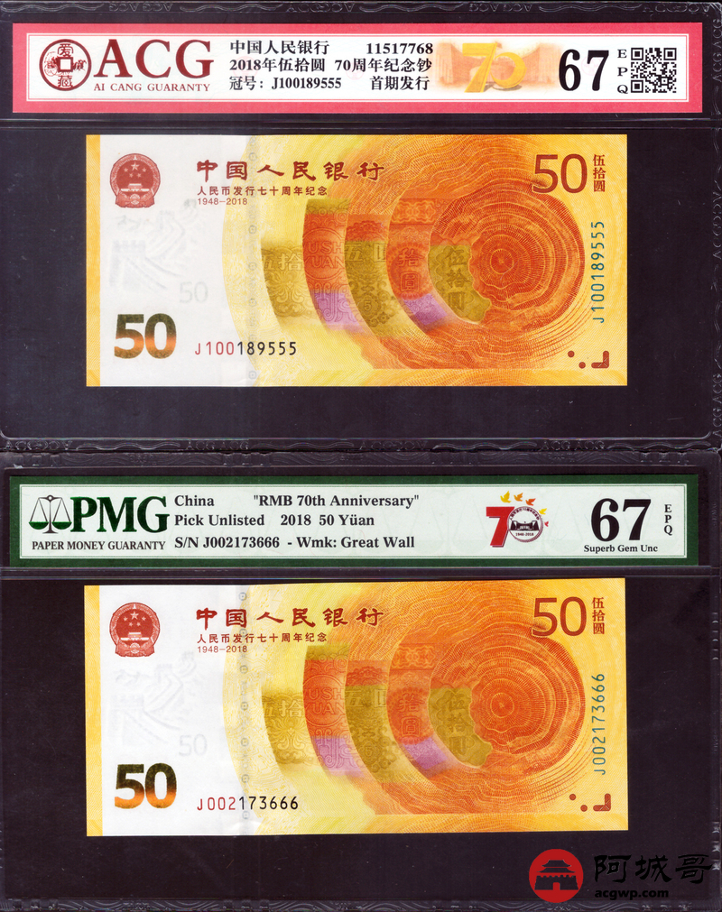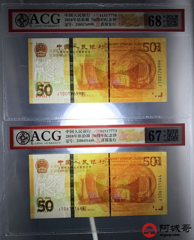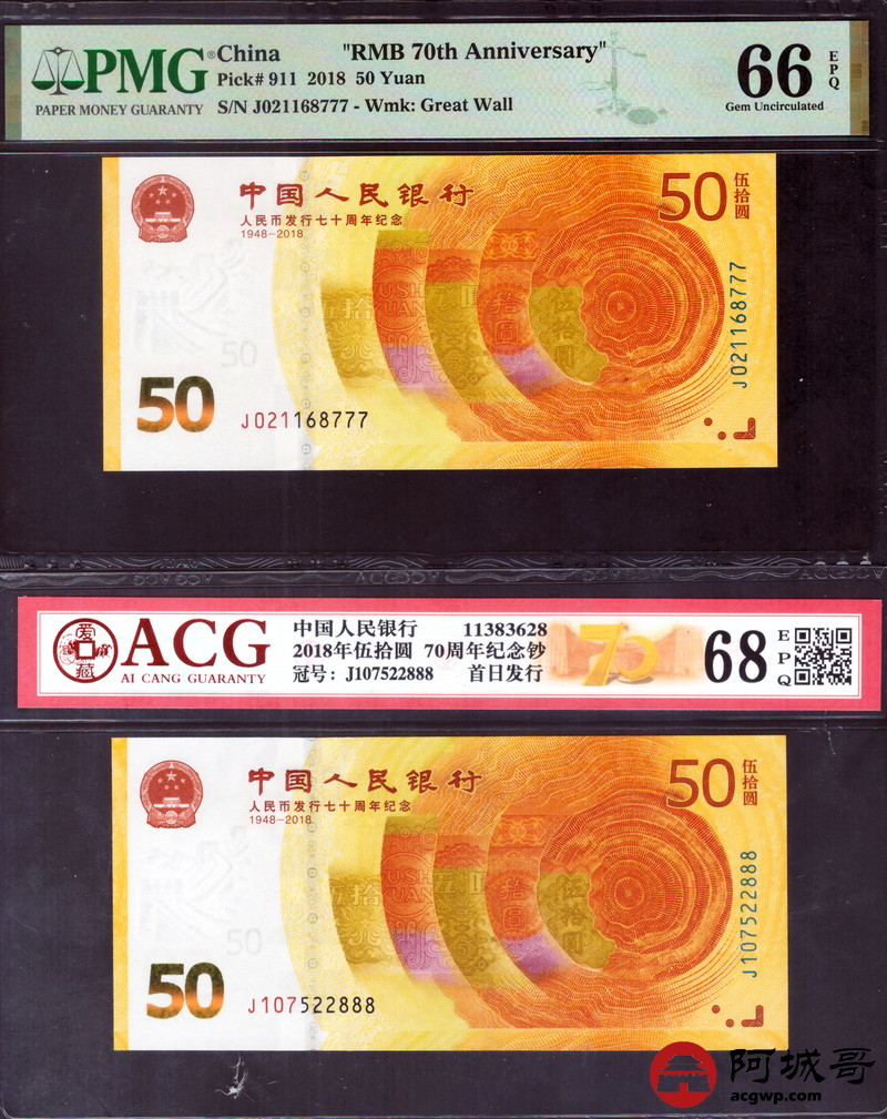 Lot:null 2018年人民币成立70周年 尾豹子号111-000 10张一组