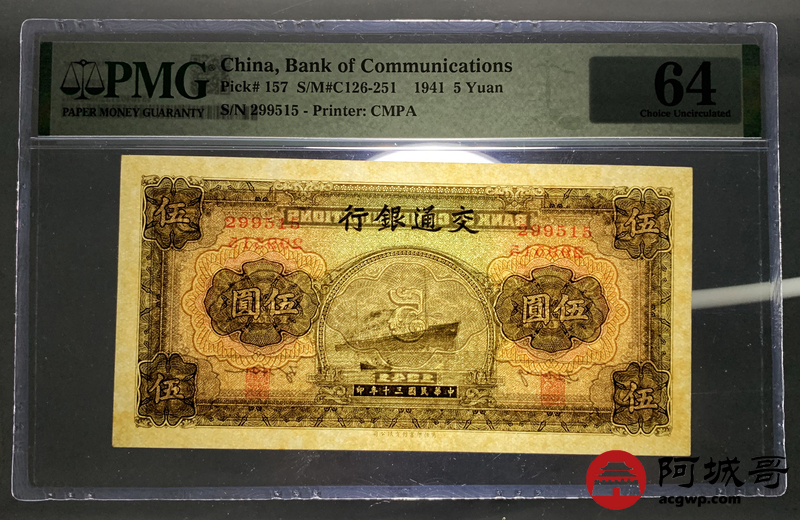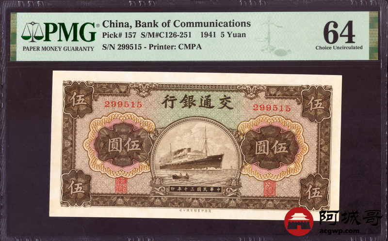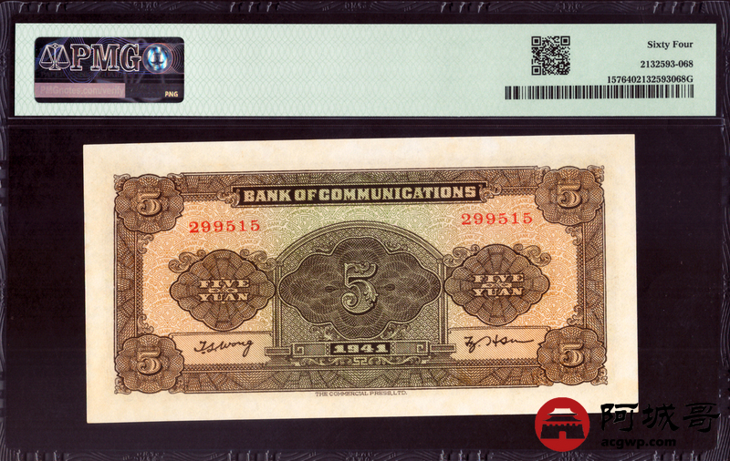 Lot:null 民国三十年 交通银行伍元 PMG 64