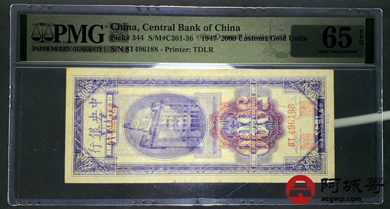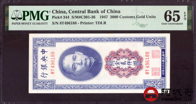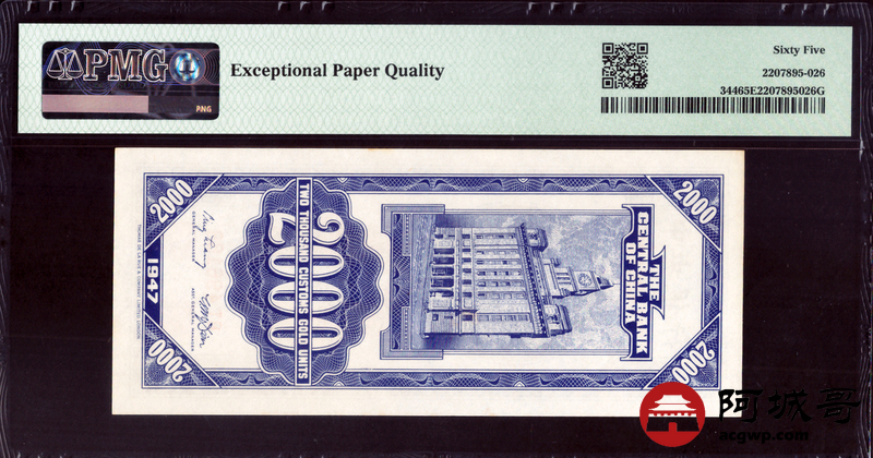 Lot:null 民国三十六年 关金贰仟元 PMG 65
