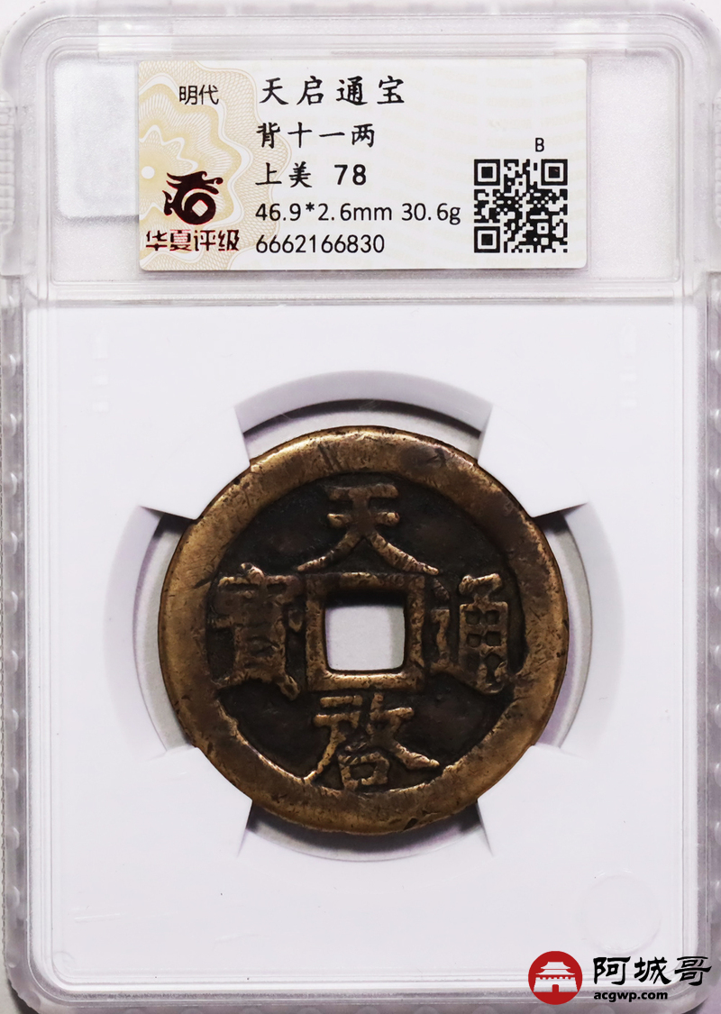 Lot:45 天启通宝 背十一两 华夏评级 上美78