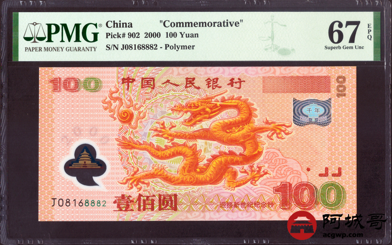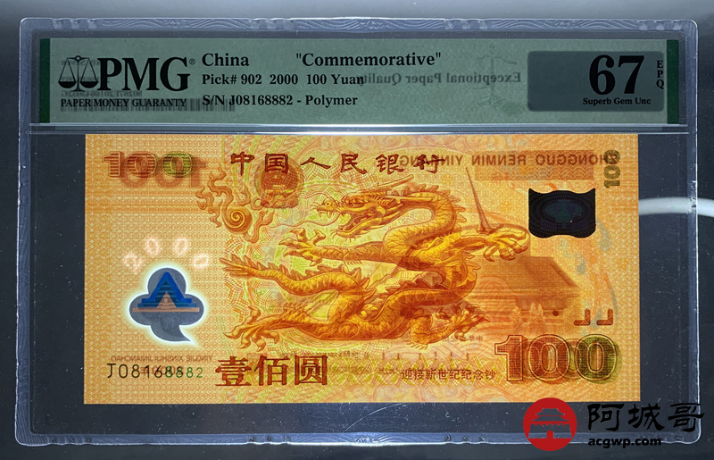 Lot:null 2000年 千禧龙钞 100元 PMG 67EPQ 靓号王