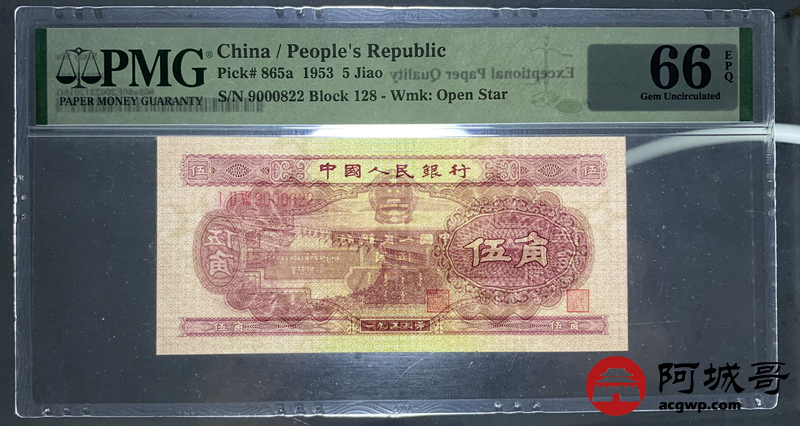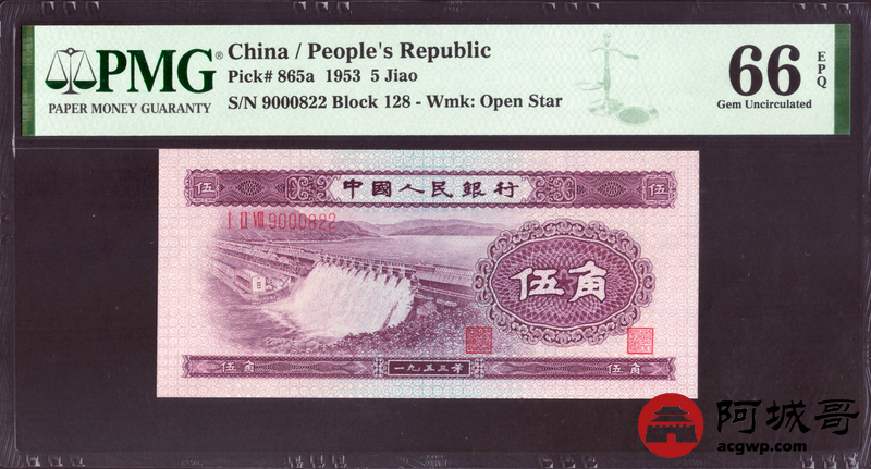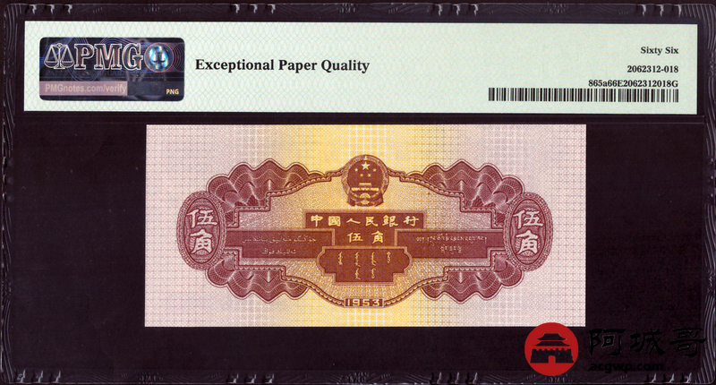 Lot:null 二版 1953年 伍角 PMG 66EPQ 靓号王