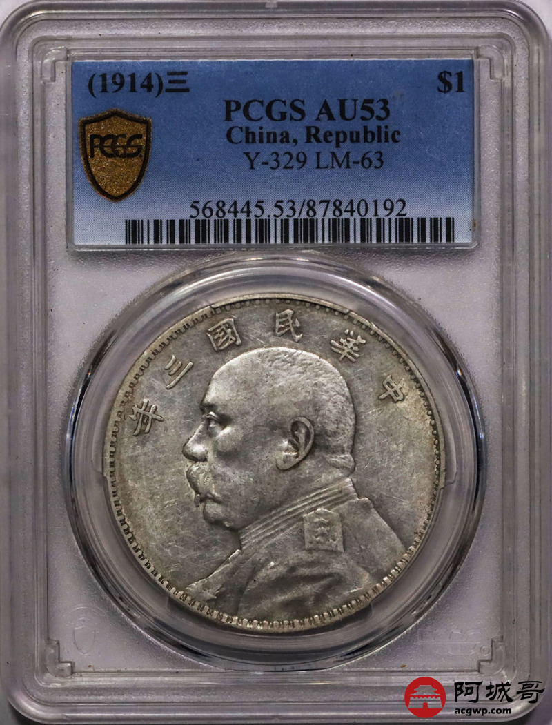 Lot:5 深打底光 三年大头断笔民 大背逆 PCGS AU53