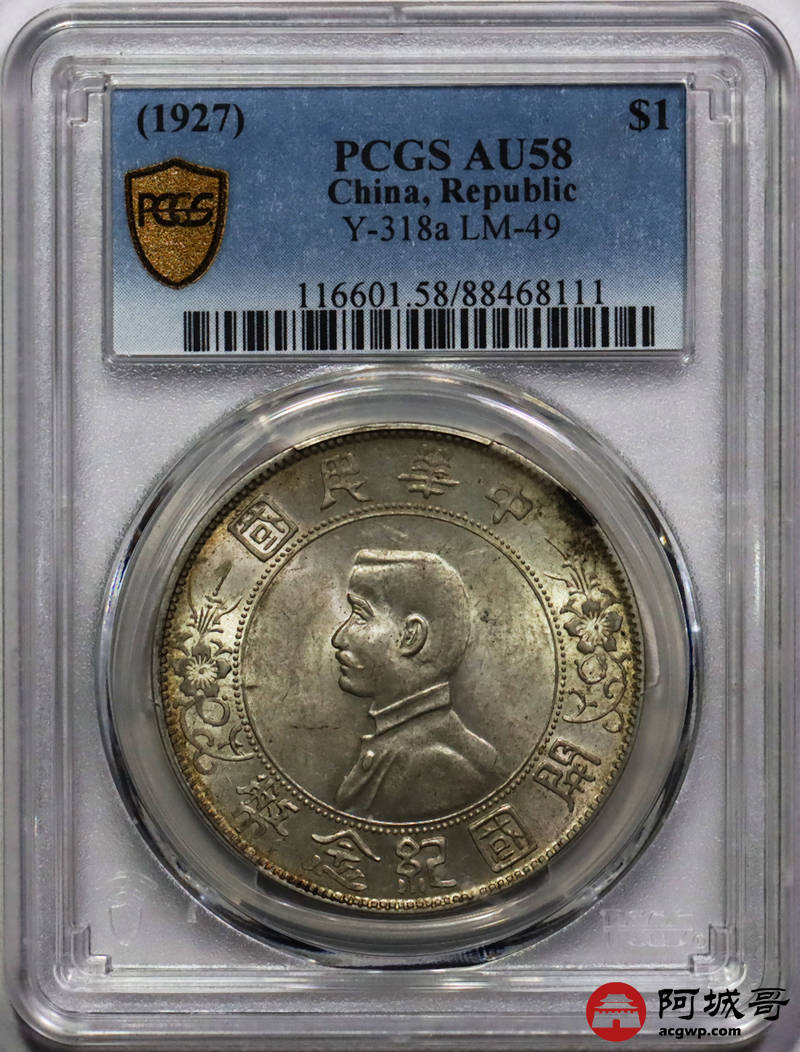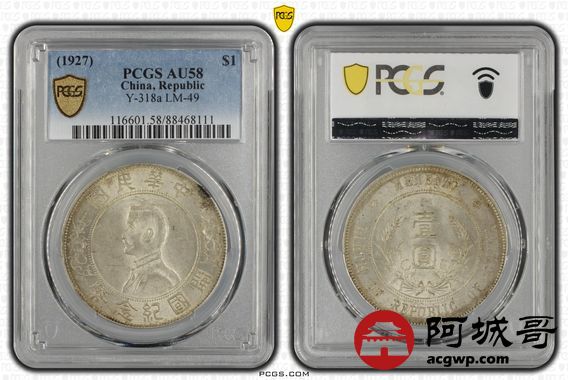 Lot:15 黄油转光 孙像小头壹圆 点草出头圆 PCGS AU58
