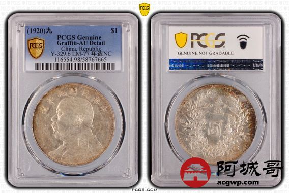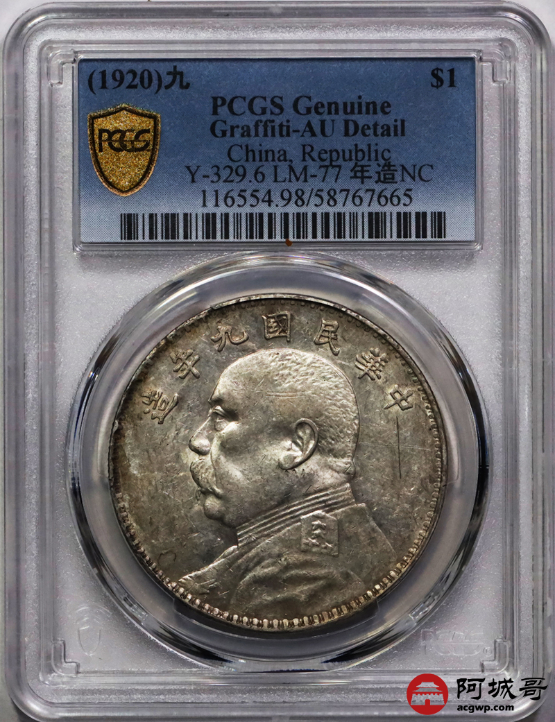 Lot:26 深打 转光 九年粗发壹圆 PCGS AU