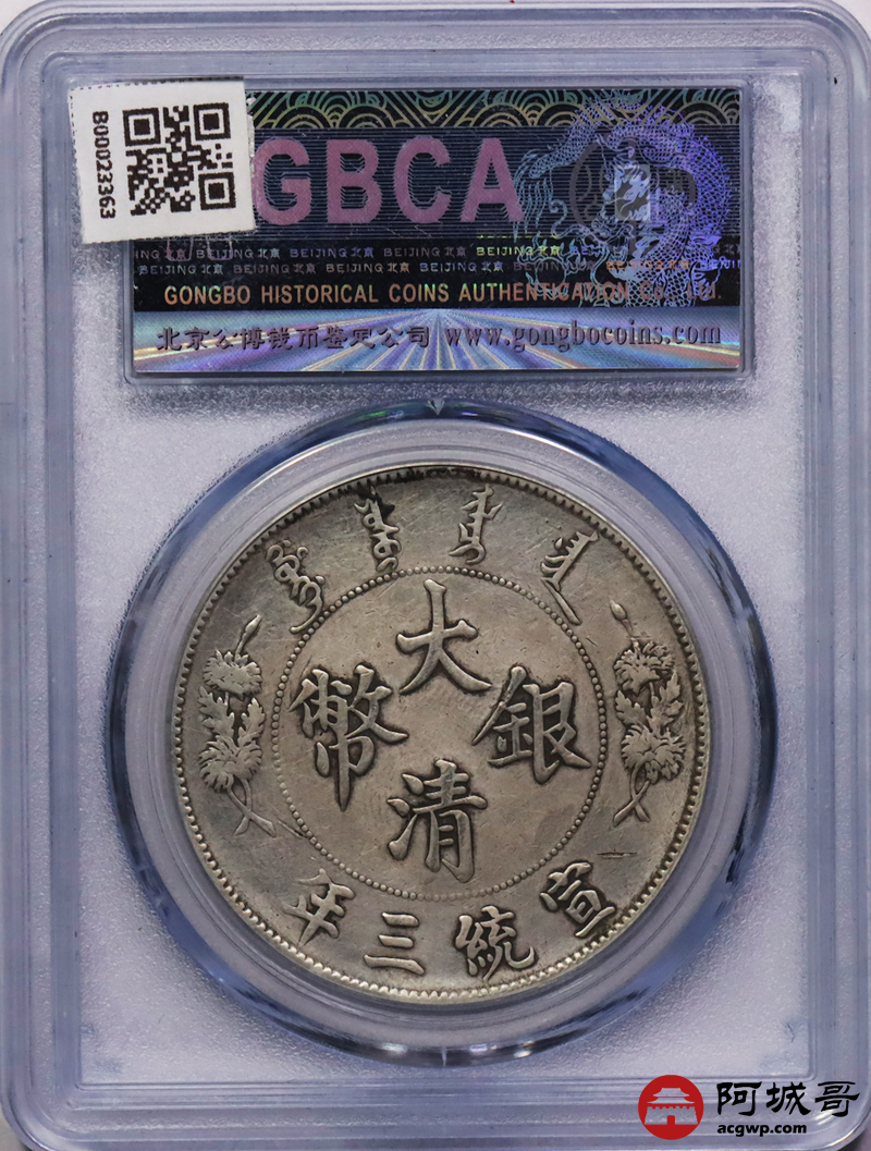 Lot:23 原味 大清宣三壹圆 公博 XF45