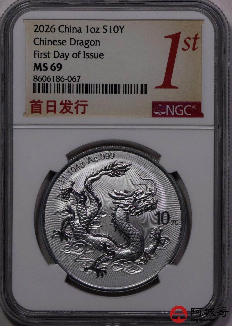 Lot:43 2026年中国龙银币NGC MS69首日 倒置串号